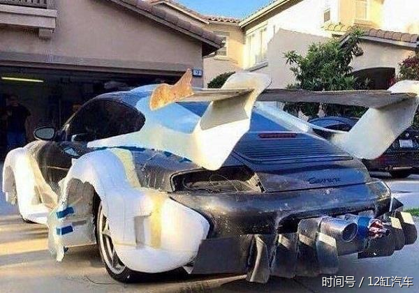 改装需要很多钱这不假,不过用一台废旧保时捷加上各种山寨的套件制造出这么一辆廉价改装车关键还这么丑陋这就是车主的不对了